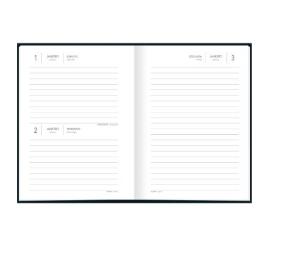 São 160 folhas com visão diária, exceto sábados e domingos, para anotações rotineiras, insights ou ainda listar compromissos.