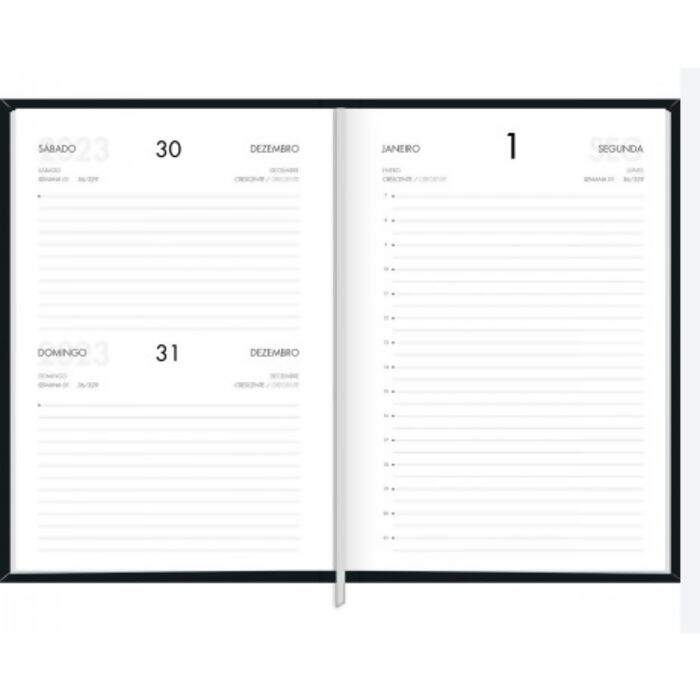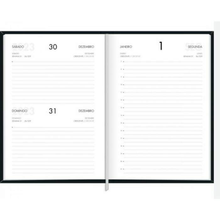 A Agenda Executiva Costurada 13,4 x 19,2 cm Napoli 2022 tem visão de 1 dia por página, exceto sábado e domingo.