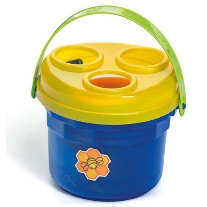 Conteúdo da embalagem: 01 Balde, 01 tampa, 07 copos empilháveis e 01 bolinha.