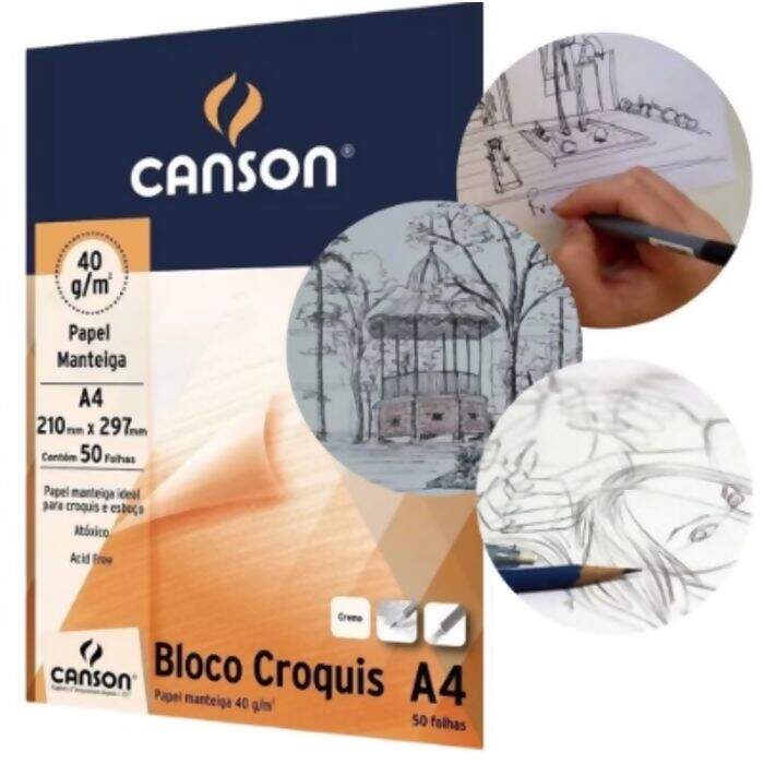 O Bloco Croquis Papel Manteiga 50 folhas A4 40gr da marca Canson é um papel de alta qualidade projetado para artistas e desenhistas.