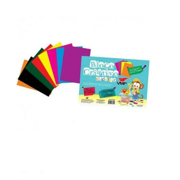 Bloco Criativo Escolar A3, contem 32 folhas em 8 cores de 120g cada, tamanho: 420mm x 291mm, use sua criatividade para realizar os mais incríveis trabalhos manuais, com ou sem o uso da tesoura.