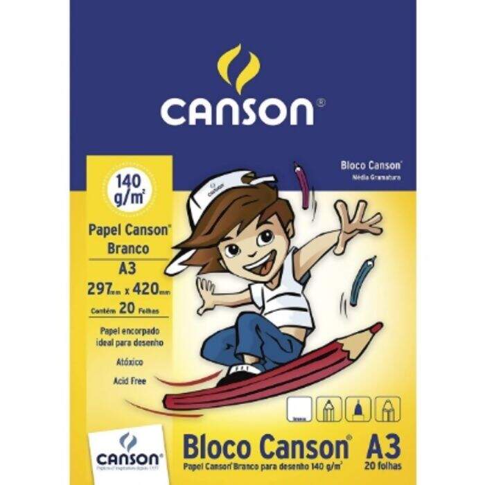 Descrição Bloco de Papel Canson Desenho | Branco A3 - 140g/m - 20 Folhas