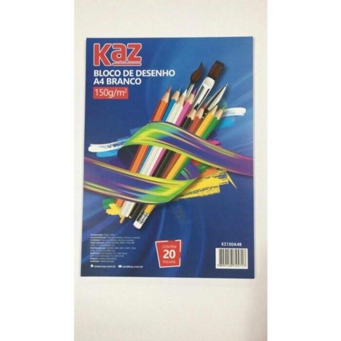BLOCO PARA DESENHO A4 150GR COM 20 FOLHAS - KAZ