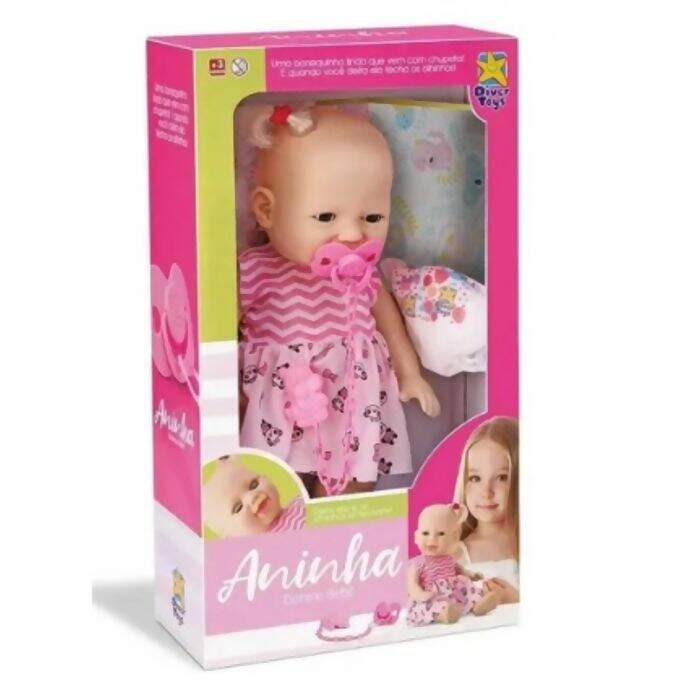 A boneca Aninha é uma graça, ela abre e fecha os olhinhos, para tirar aquela sonequinha, vem com chupeta e uma fraldinha e parece de verdade, tem expressão facial sorridente e super delicada, e com sua linda chuquinha de cabelo fica com cara de um lindo bebê.