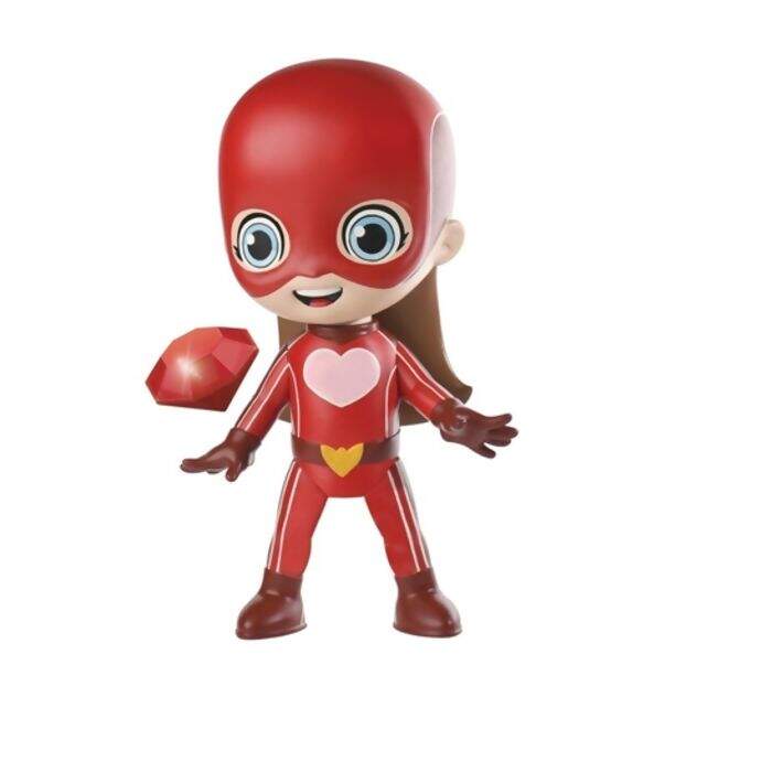 O produto possui 27 cm, acompanha a pedra do poder que o aventureira vermelha utiliza para virar Super heroína.
