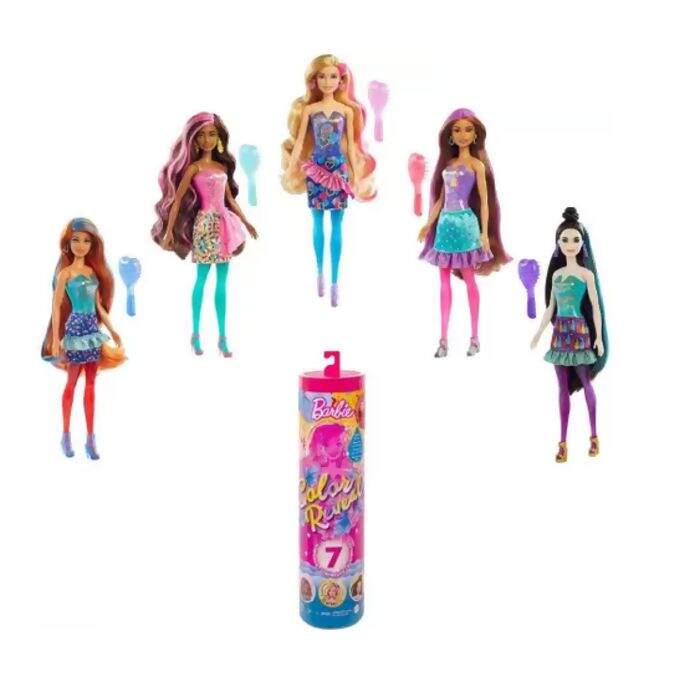 As bonecas Barbie® Color Reveal ™ proporcionam uma experiência de desembalagem cheia de surpresas - sete delas!