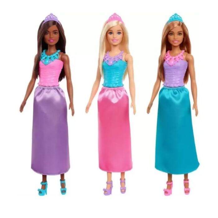 Estas lindas bonecas da princesa Barbie vêm com belíssimos vestidos de festa para ocasiões de gala e diversão sem fim Elas estão prontas para arrasar com seu lindo corpete repleto de detalhes, que são sua marca registrada, e uma saia de cetim grosso para combinar.