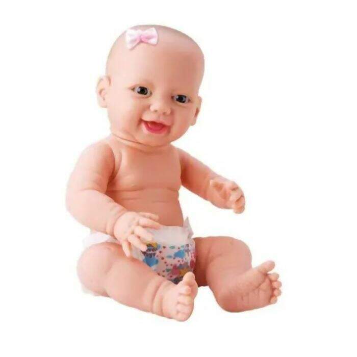 Uma bonequinha muito linda, toda em vinil. Vem com lacinho na cabeça e fraldinha descartável!