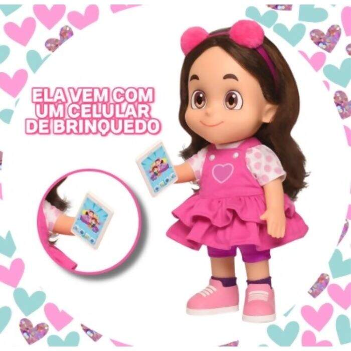Boneca Maria Clara Com Som E Celular Irma jp Youtuber Nova Agora com 14 frases, acessório e um novo visual.