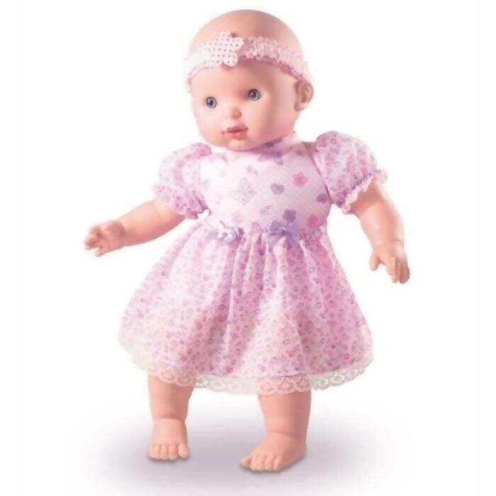 Seu corpinho é macio e sua roupinha é estampada. Leve sua bonequinha para qualquer passeio e divirta-se.