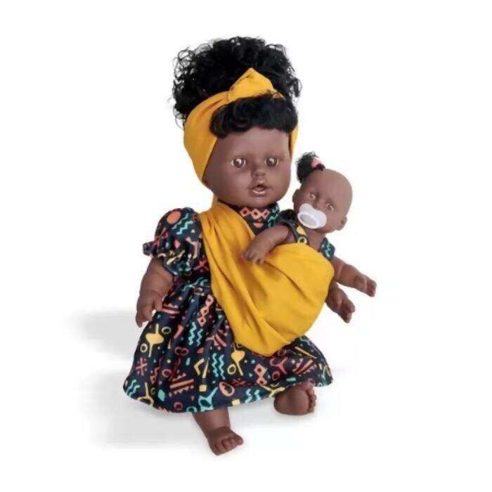 Conteúdo da Embalagem: 01 Boneca Mãe, 01 Boneca Bebê, 01 Chupeta e 01 Pano para embrulhar a bebê