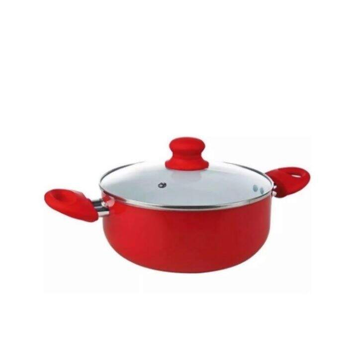 Caçarola De Cerâmica Com Tampa De Vidro Nº16 Vermelha