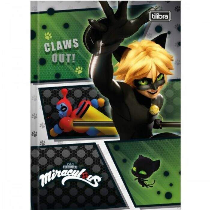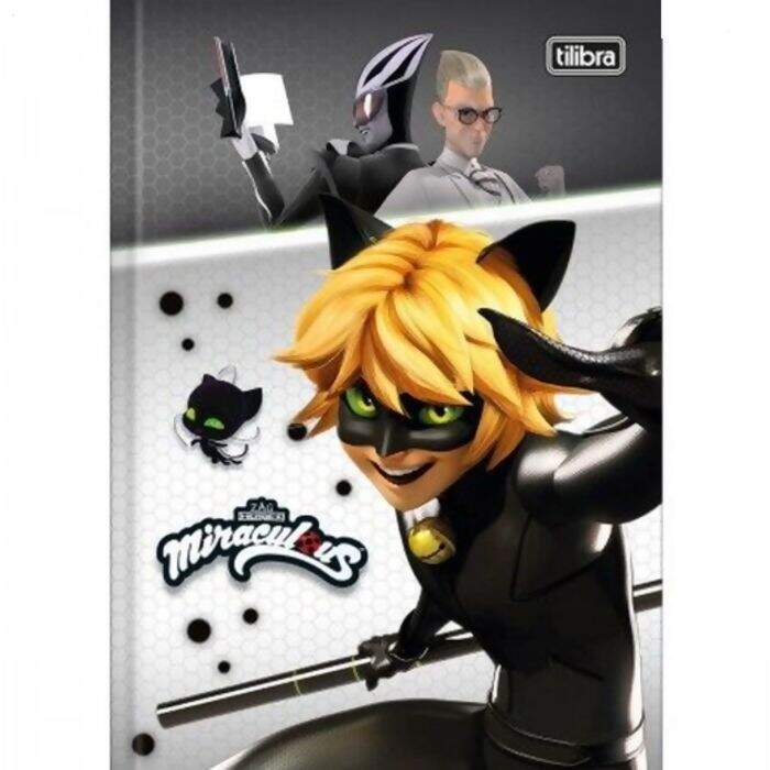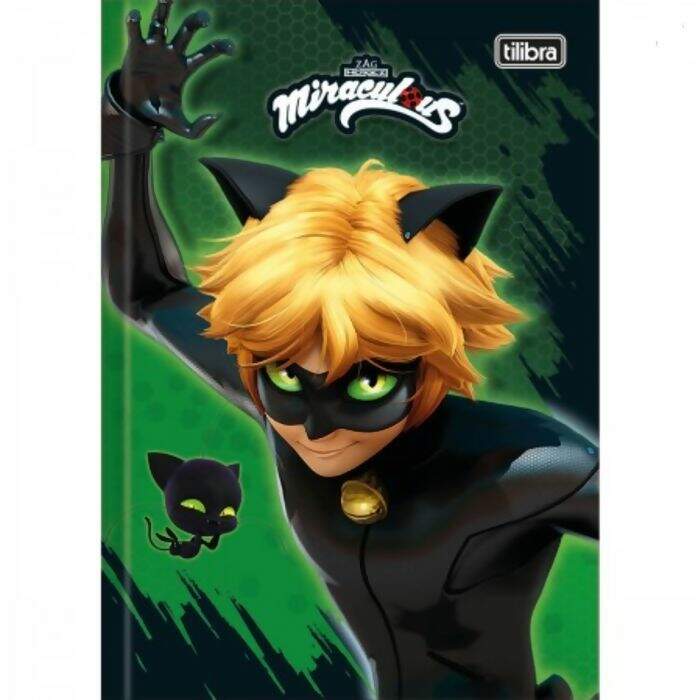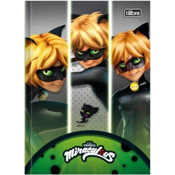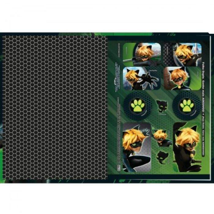 O Caderno Brochura Capa Dura 1/4 Miraculous: Cat Noir 80 Folhas possui capa dura com a parte interna decorada, folha dupla de adesivos e folhas pautadas. Ideal para o dia a dia na escola.
