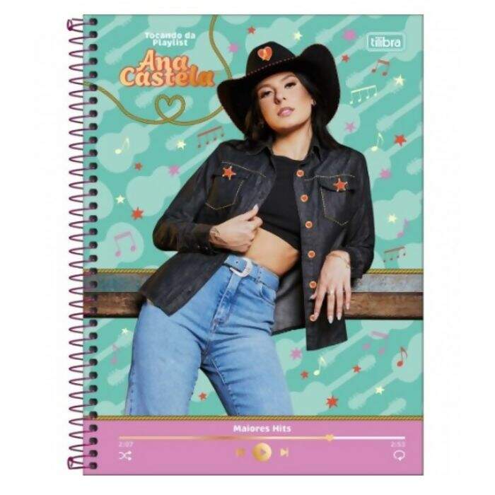 O Caderno Espiral Capa Dura Universitário Connect 10 Matérias Ana Castela 160 Folhas da Tilibra é perfeito para você que busca uma opção para organização da rotina de estudos com visual da cantora Ana Castela, boiadeira mais famosa do Brasil.