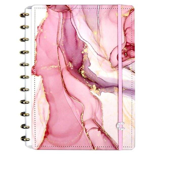 Inspirado em uma pedra preciosa, sua capa marmorizada e detalhes dourados, o caderno Ágatha é perfeito para quem quer adicionar um pouco de luxo ao seu dia a dia.