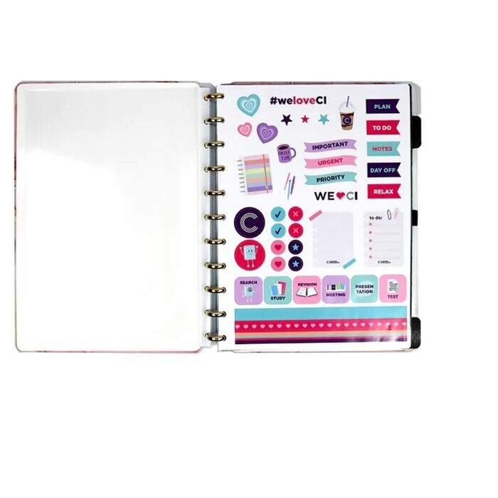 Ele tem tudo o que você precisa: facilidades como elástico e bolsa plástica, além de fluidez com folhas e capas destacáveis.