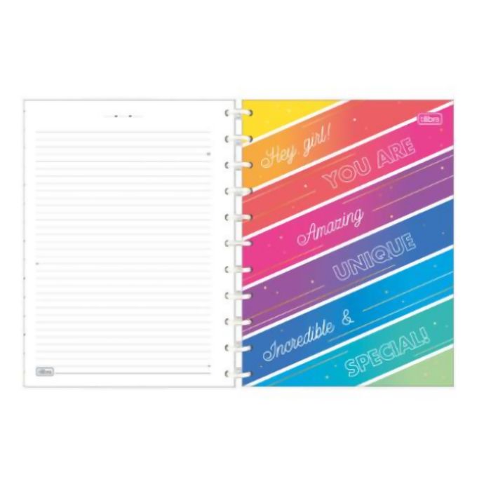 O Caderno Universitário Tilidisco 10 Matérias Be Nice 160 Folhas possui capa e contracapa flexíveis, com acabamento metalizado, que podem ser utilizadas dos dois lados. O produto tem camada extra de proteção feita por uma sobrecapa plástica, com acabamen ...veja mais