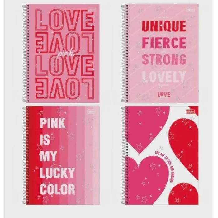 Descrição Caderno Universitário | Love Pink | 1 Matéria - 80 Folhas | Tilibra