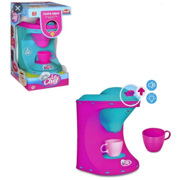 Essa Cafeteira Infantil vem com dispositivo eletrônico que faz barulho e acende a luz quando acionado, parecendo uma cafeteira de verdade !