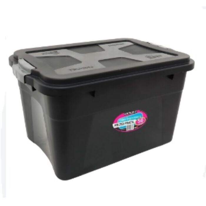 Caixa organizadora com tampa e trava 56L - Preta Prata
