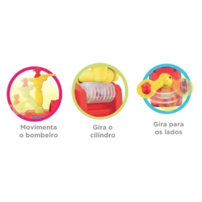 Você coloca as pecinhas nos encaixes, pressiona o botão e elas caem! O bombeiro se movimenta de um lado para o outro! Ele é grande e robusto, com cores chamativas que logo vão chamar a atenção dos pequenos.