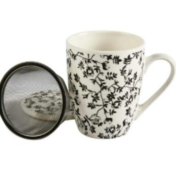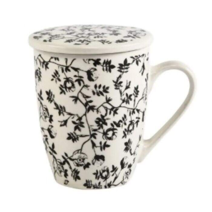 01 Caneca De Porcelana Com Tampa E Filtro De Aço Lyor 310ml.