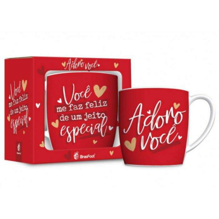 Caneca Porcelana Urban 360ml - Adoro Você - Brasfoot