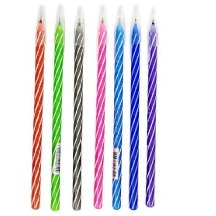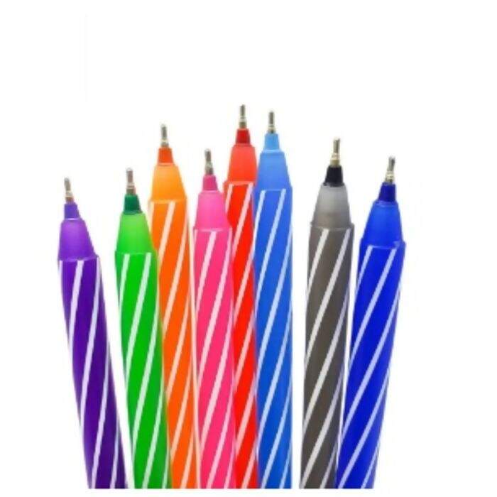 As canetas esferograficas CIS Spiro tem o corpo listrado na cor da tinta, são gostosas para escrever, e a tinta tem boa pigmentação.