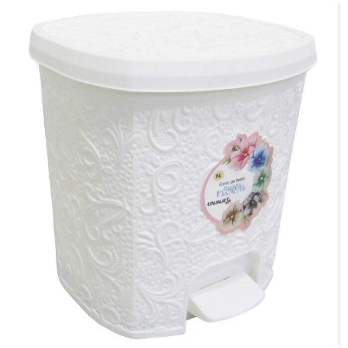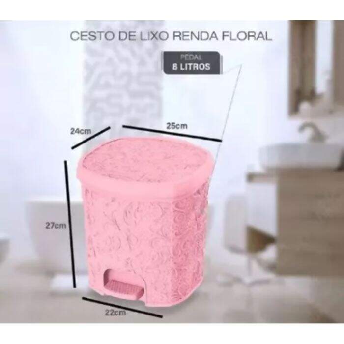 Lixeira Oval com Decoração Tipo Renda Floral em Alto Relevo com Pedalcom capacidade para até 8 litros, feita em material de alta qualidade, deixa qualquer ambiente com umaaparência sofisticada, organizadoe higiênico, pode ser utilizada tanto em ambientes internos como externos.