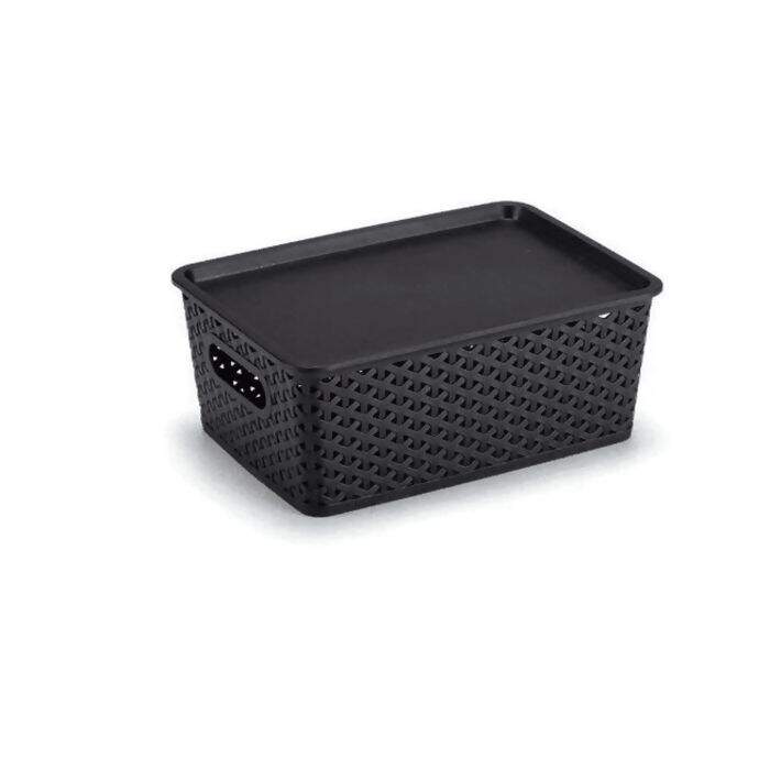 Caixa Organizadora Rattan Empilhável Preto 6,5l com tampa