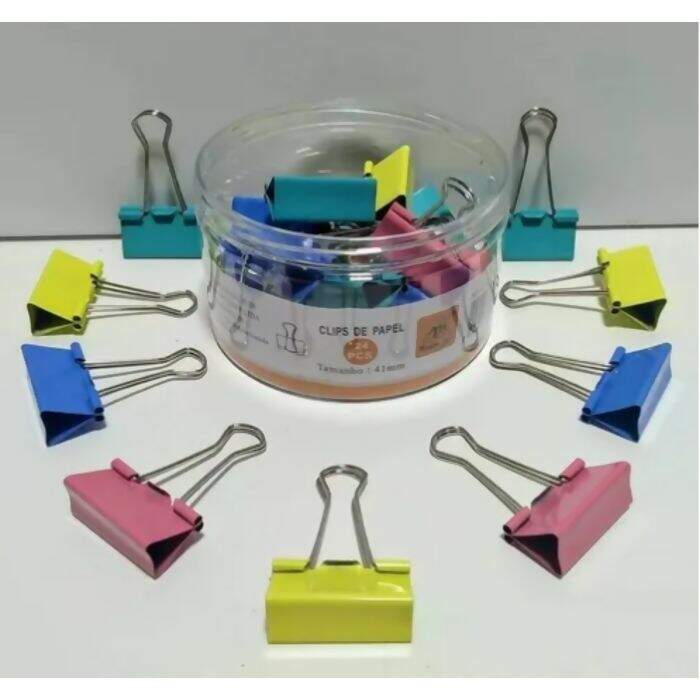 Prendedor de papel tipo blinder clip com corpo colorido de metal e aço,