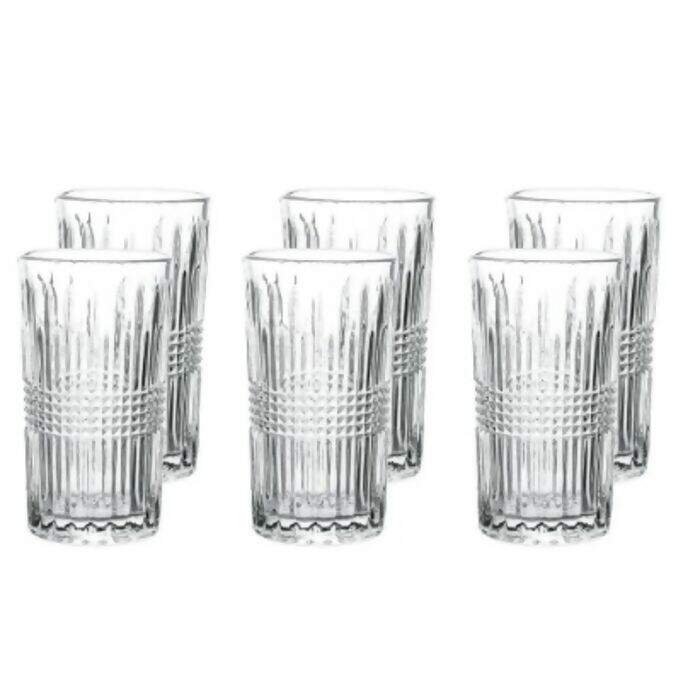 o Jogo de Copos Viena Haus 360 ml com 6 Peças é fabricado em vidro decorado e conta com textura linear.