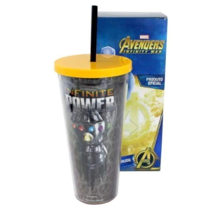 Copo Canudo Metálico Poder do Infinito, perfeito para você que é fã de Avengers e gosta do Thanos, esse titã louco que busca pelo poder infinito das jóias.