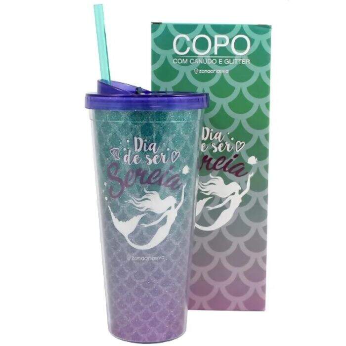 Descrição Copo Com Canudo e Glitter - Ser Sereia | Zona Criativa