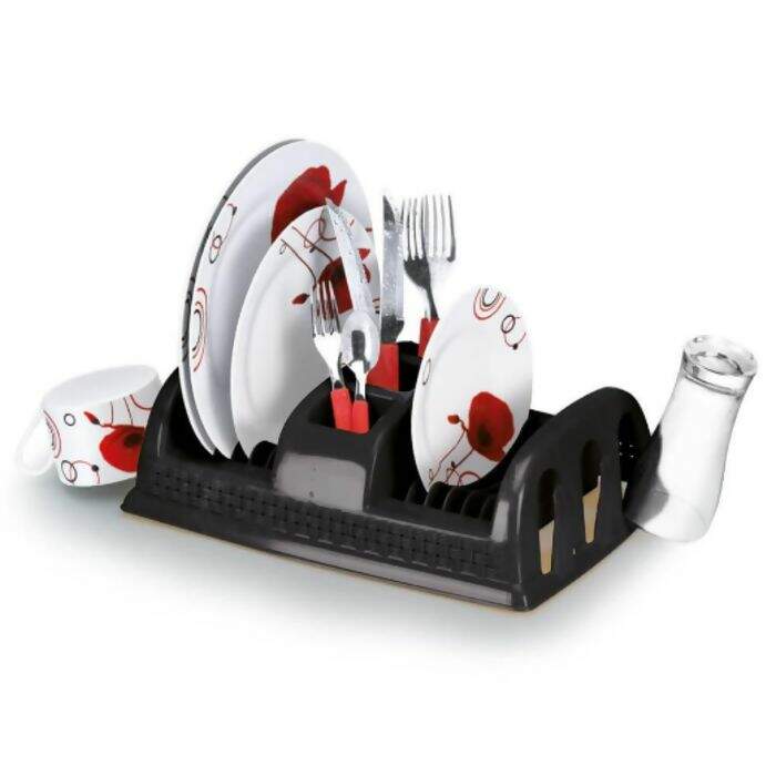 Escorredor de Pratos de Plástico Compacto Rattan Cor Preto