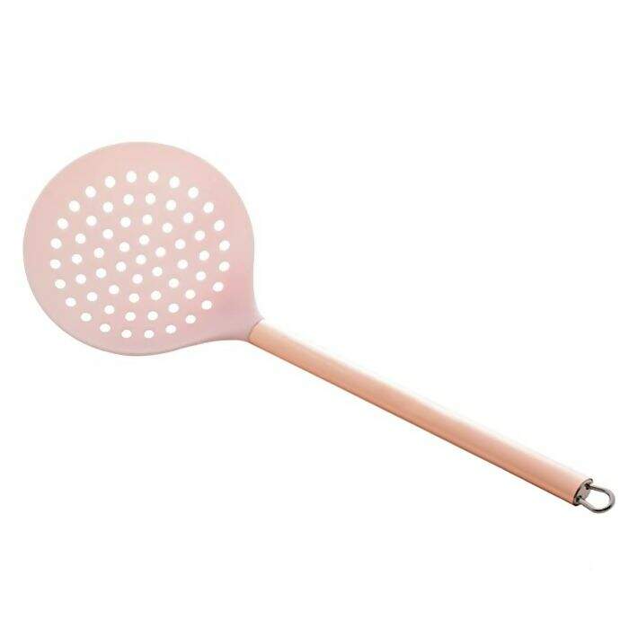 ESCUMADEIRA DE NYLON ROSA COM CABO AÇO INOX ROSE 34CM - LYOR