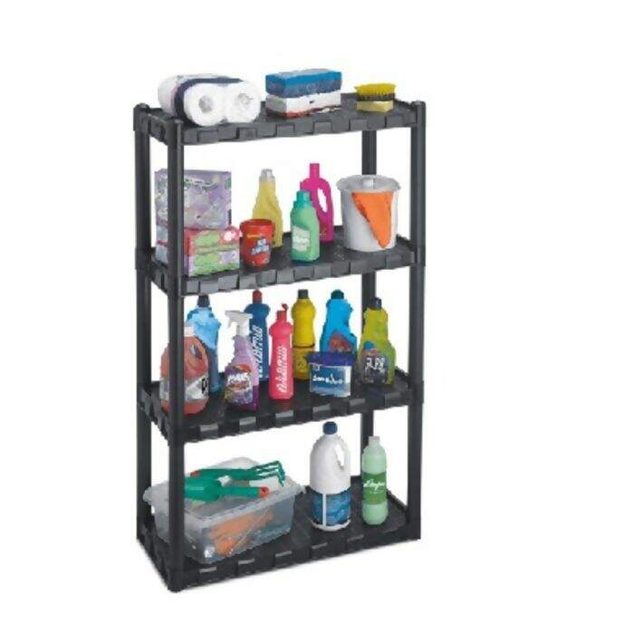 Descrição Estante Plástica Grande Com 4 Prateleiras Preta