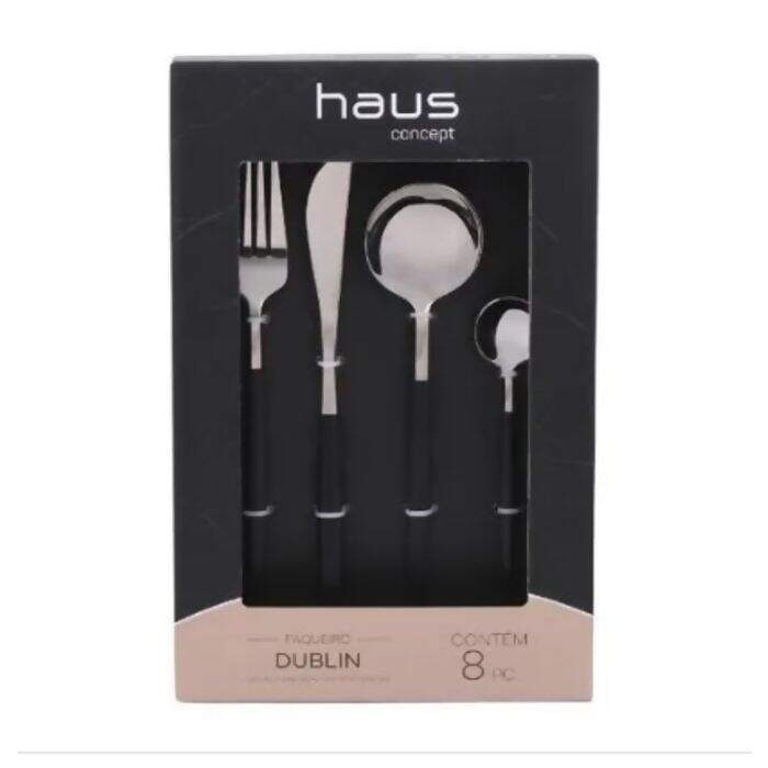 Faqueiro em inox Haus Dublin 8 peças preto