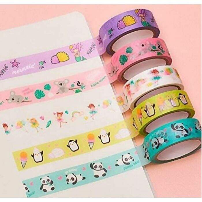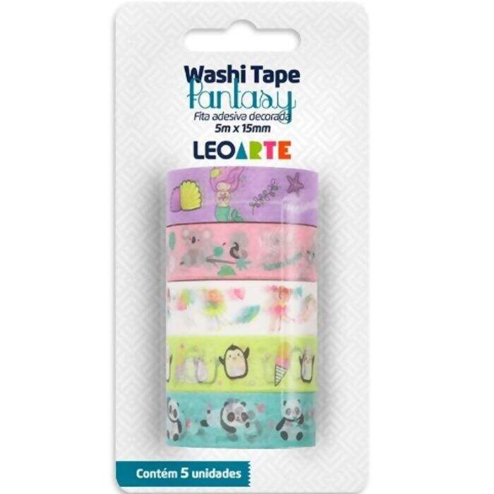 A linha Fantasy é composta por 5 Washi Tapes com as estampas de sereia, coala, fadinha, pinguim e panda.