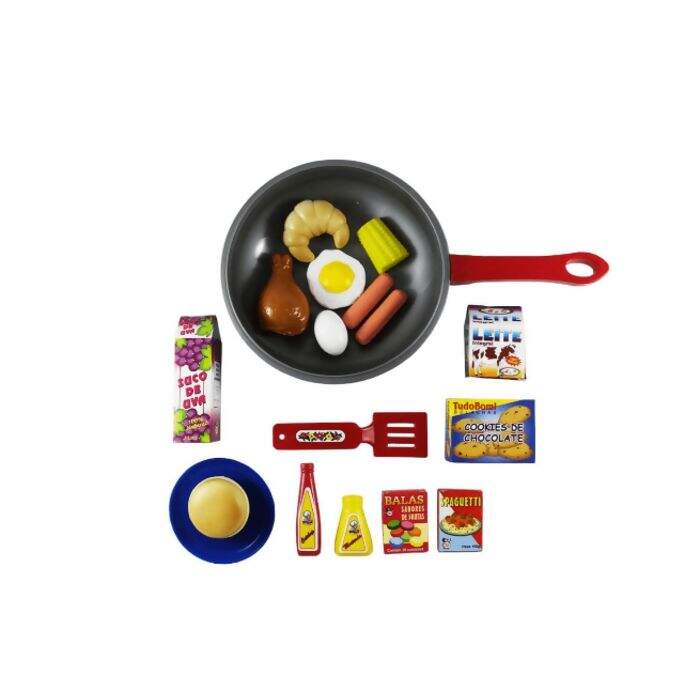 Linda frigideira com acessórios - ótimo passa tempo para as crianças brincarem de frequentar supermercado e se divertirem.