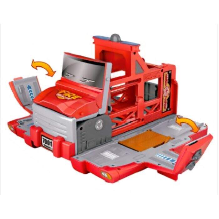 Contém: 1 Playset em Forma de Carro que se Transforma, 2 Carinhos , 1 Lançador , Acessórios e Adesivos