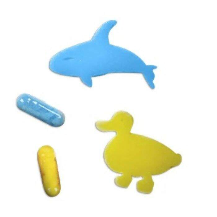 A surpresa fica por conta das 2 cápsulas incluídas, que, ao serem imersas em água quente, se transformam em esponjas de limpeza em forma de animais.