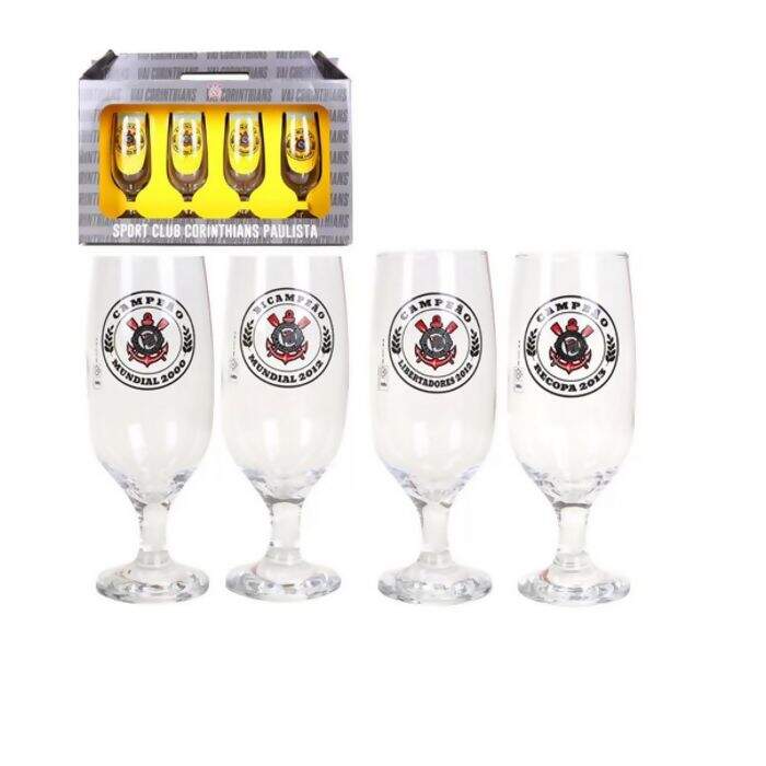 Jogo 4 Taças de Cerveja do Corinthians FC 300ml com Caixa O produto especial para o torcedor corinthiano.