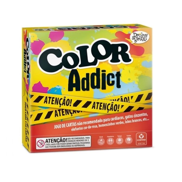 Livre-se de suas cartas o mais rápido possível sobrepondo palavras, cores, os dois ou o oposto... Color Addict é um jogo de cartas não recomendado para cardíacos, gatos cinzentos, elefantes cor-de-rosa, homenzinhos verdes, lobos brancos, etc.