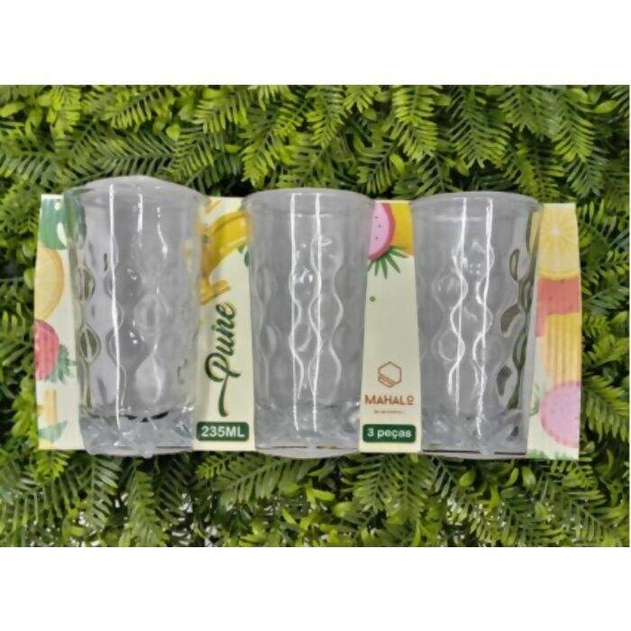 Descrição Jogo de 3 Copos de Vidro| S94 Shoppune | 235ml - 3 Peças- Mahalo