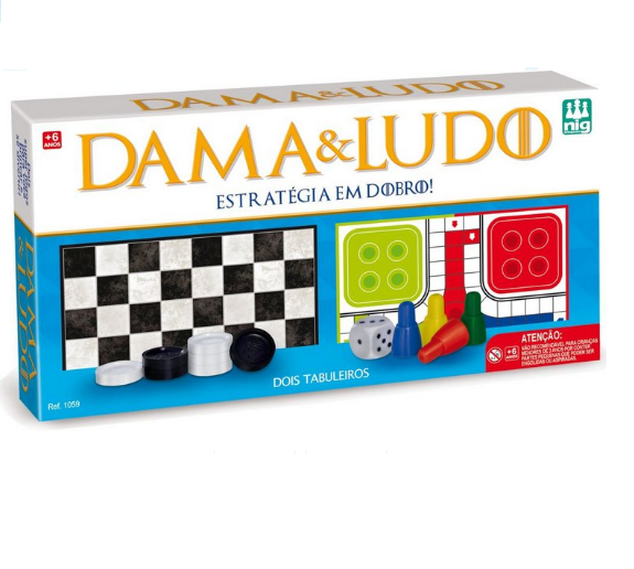 Descrição Jogo de Dama e Ludo - 2 Jogos - Estratégia Em Dobro - Nig
