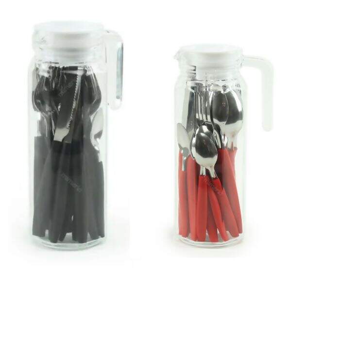 jogo de talheres vermelho/preto com jarra de vidro 25 peças - Fratell Inox