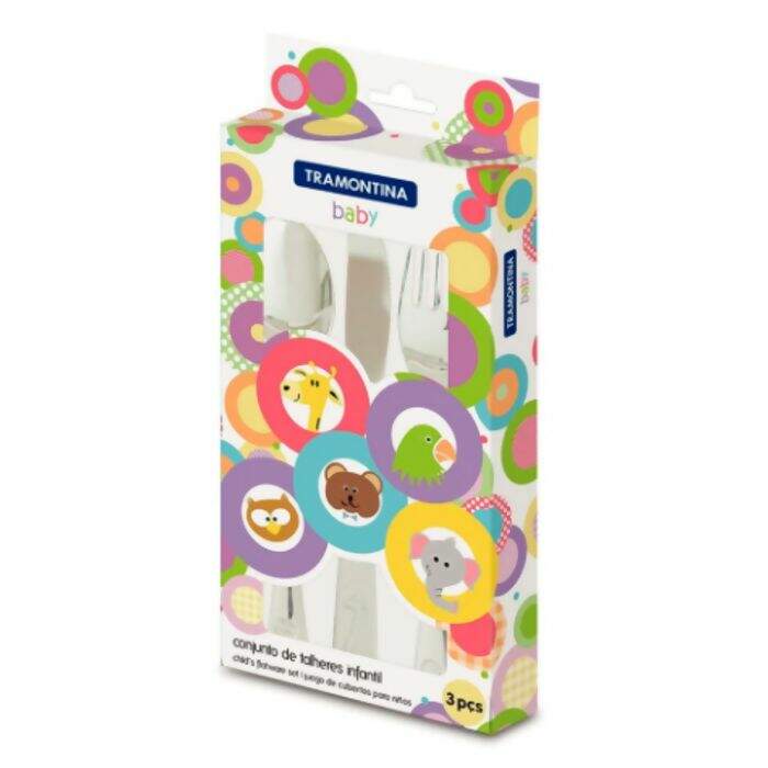 Jogo de Talheres Inox Infantil 3pçs - Tramontina- Suellen Aramrinhos e Presentes