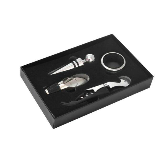 Produtos exclusivos para servir os convidados com facilidade e impressionar ao mesmo tempo, este Kit possui 4 utensílios essenciais para os Amantes do Bom Vinho.