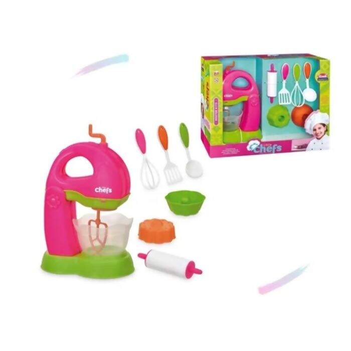 Batedeira colorida e divertida. Mistura os ingredientes girando a manivela. Faça bolos e receitas incríveis com essa linda Batedeira.